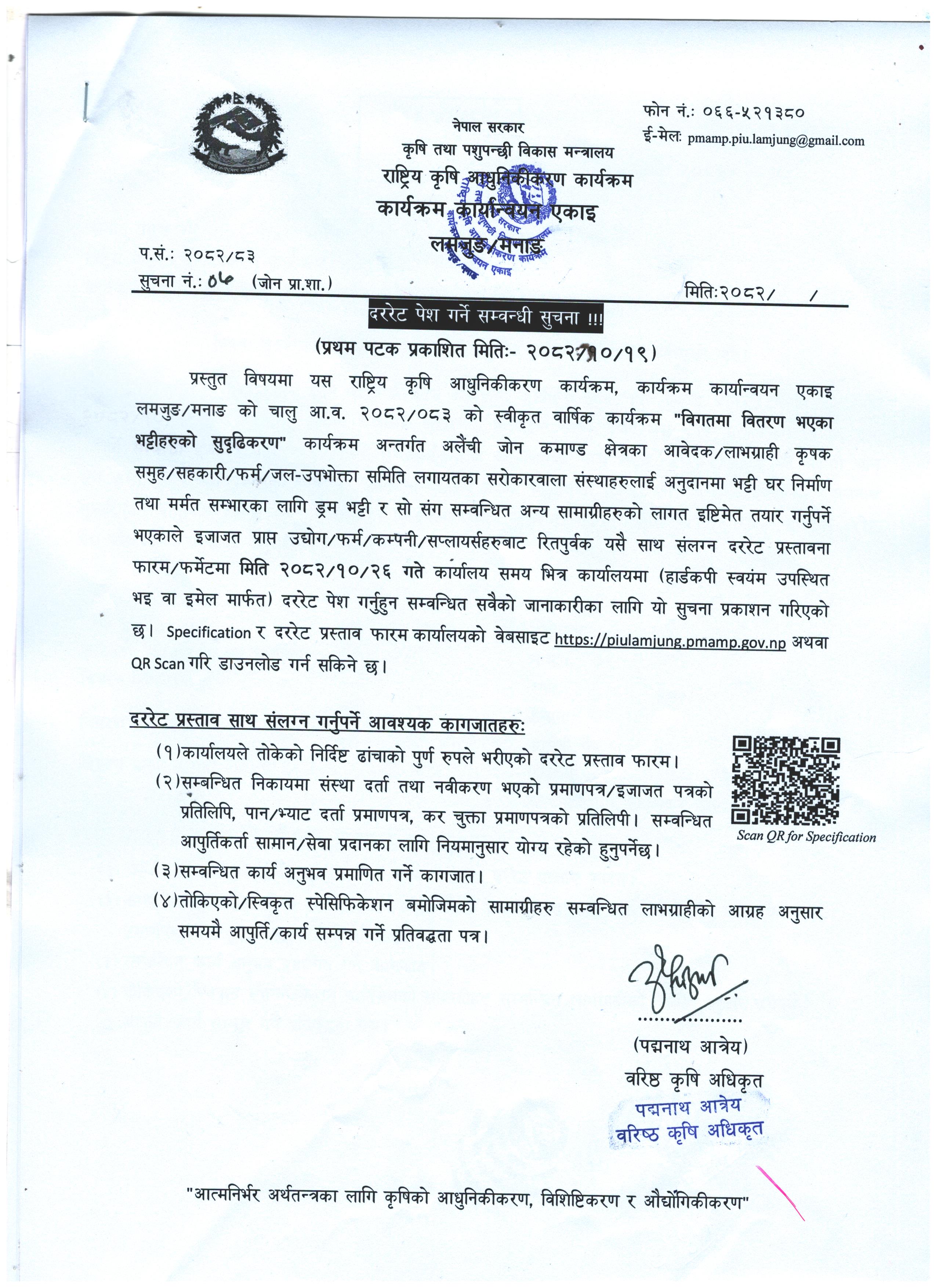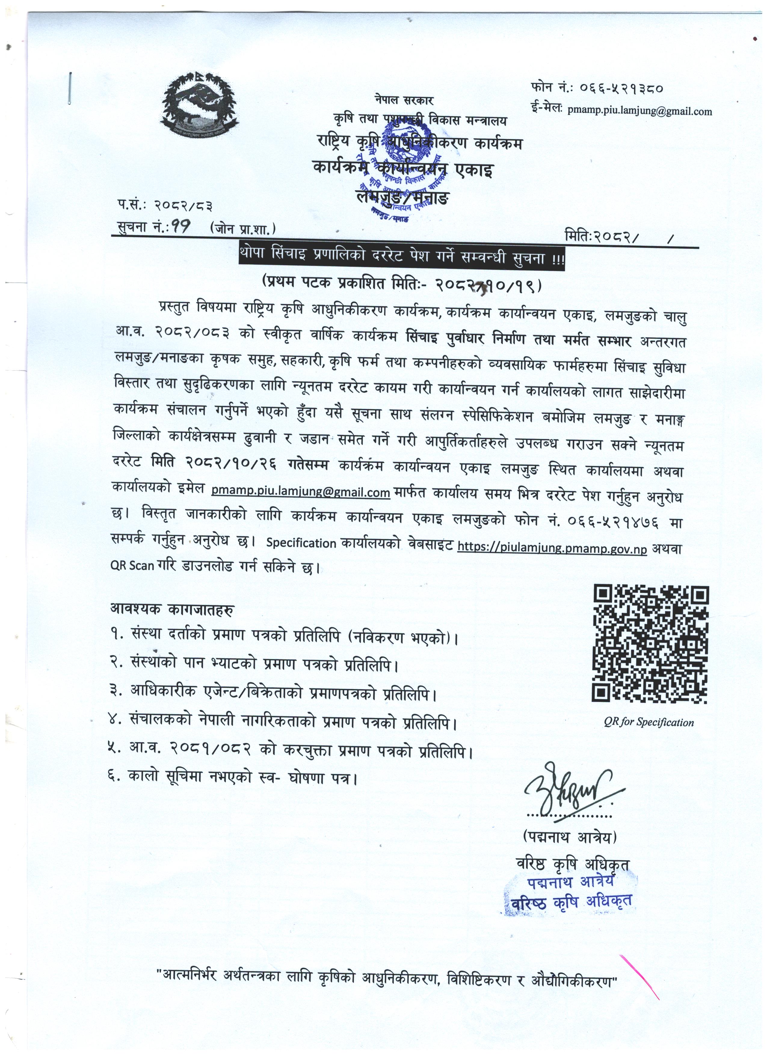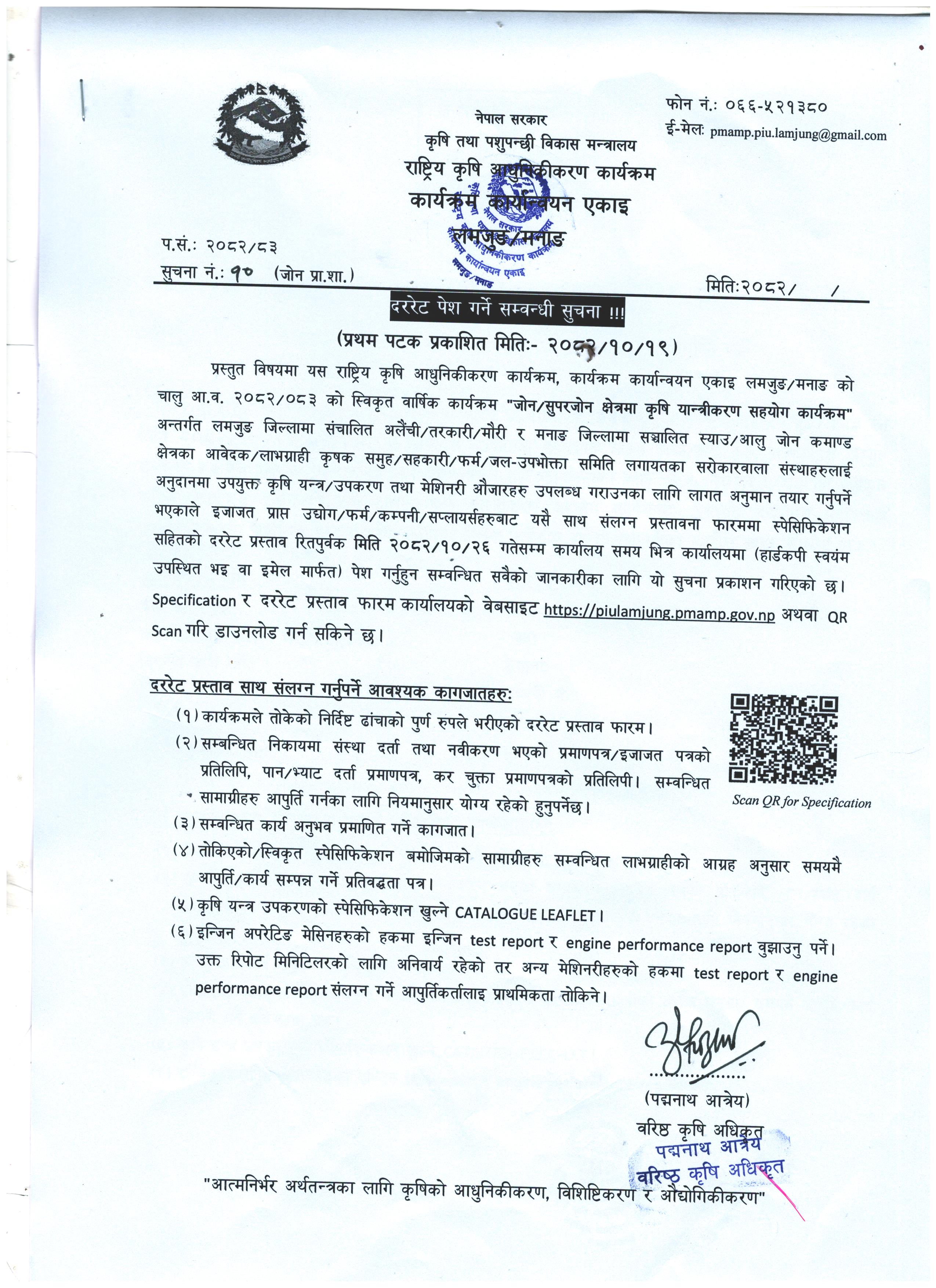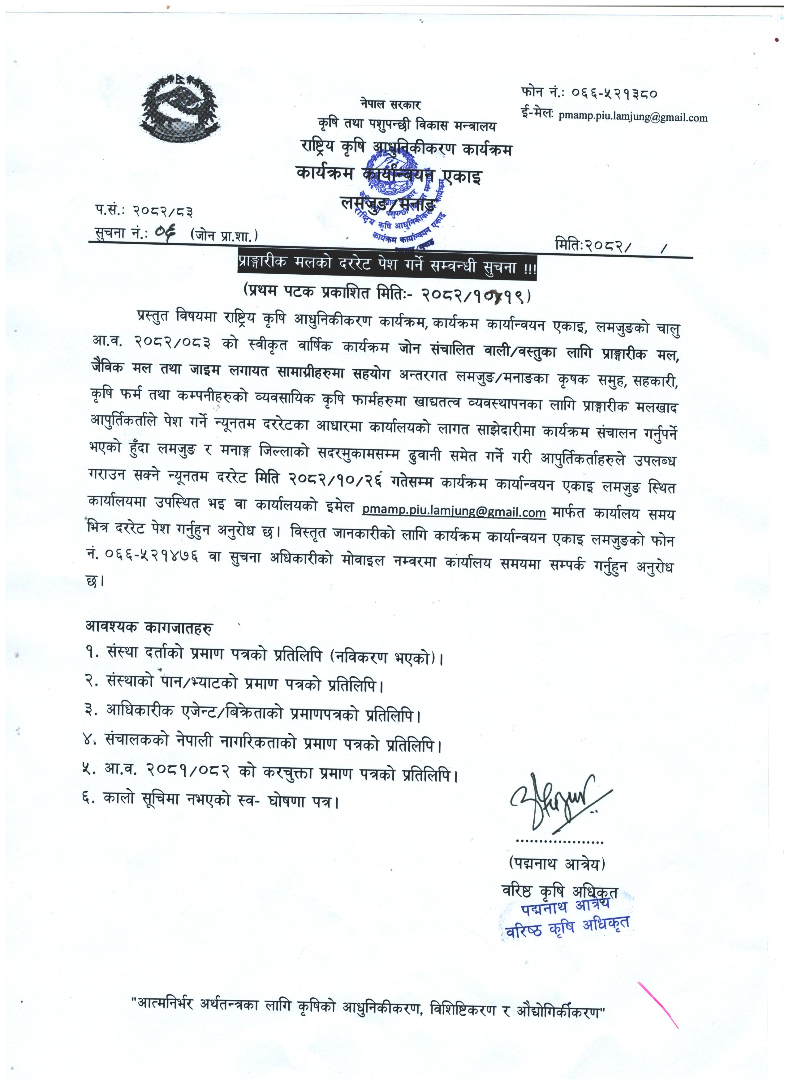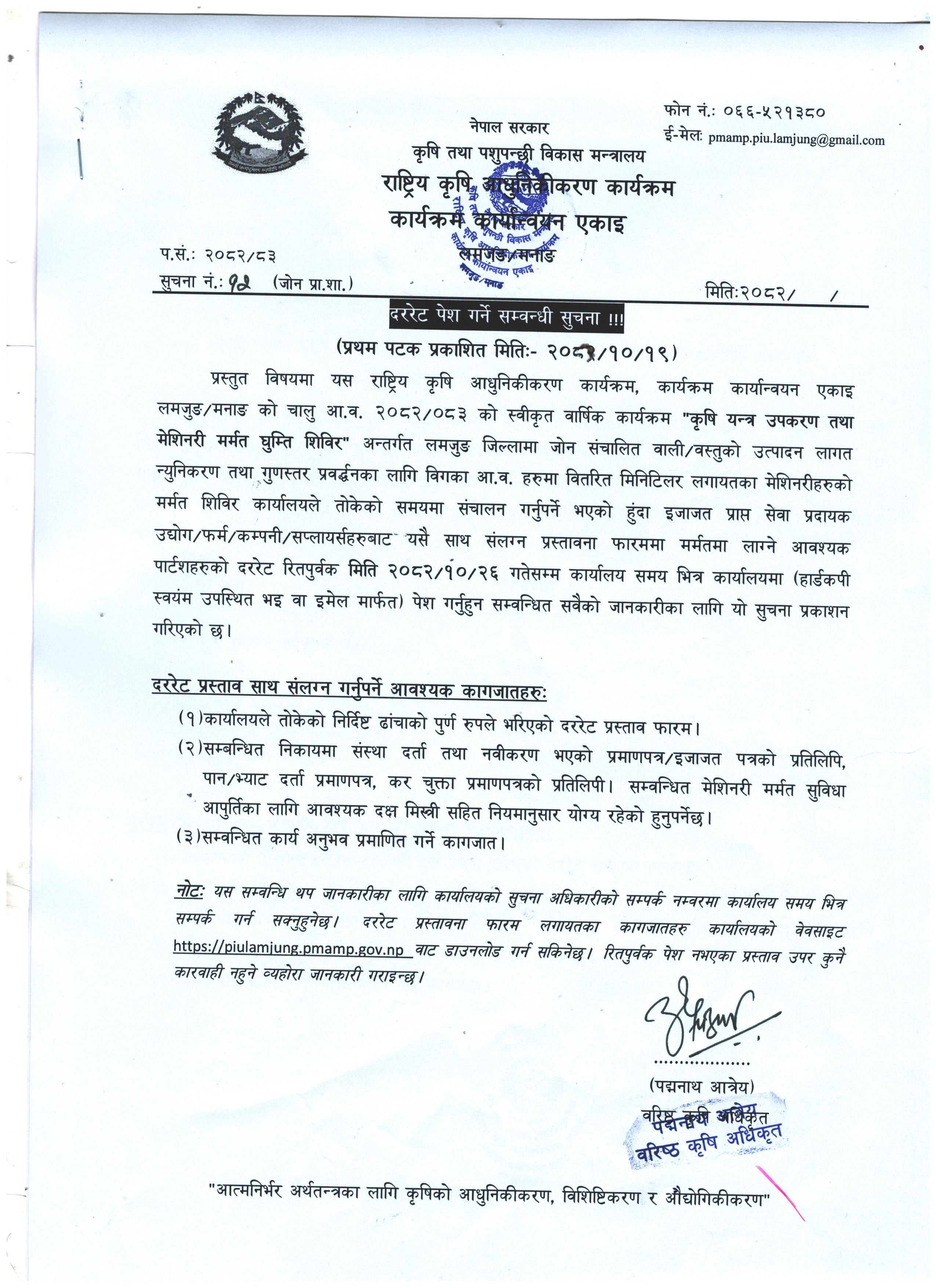 नेपाल सरकार राष्ट्रिय कृषि आधुनिकीकरण कार्यक्रम (कार्यक्षेत्र: लमजुङ र मनाङ ) |